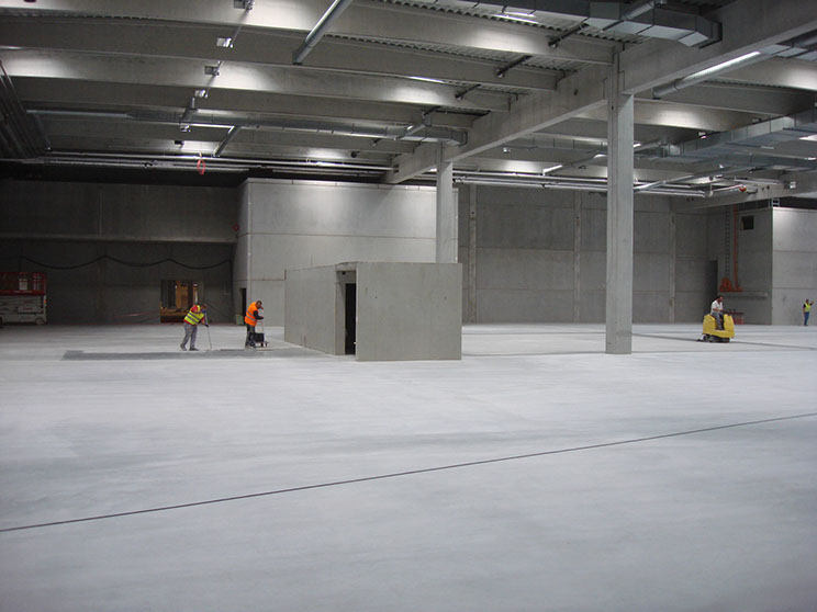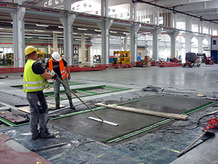 Wärmedämmung, Stahlfaserbeton liefern, einbauen und glätten inklusive Hartstoffeinstreuung und chemischer Betonverdichtung, Fugenschnitt